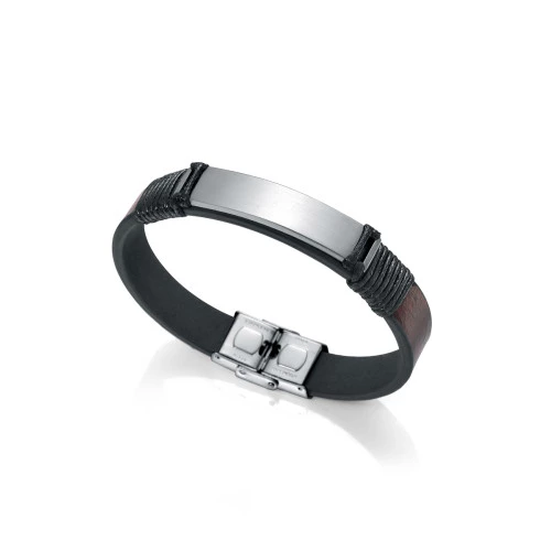 Pulsera de Viceroy para hombre 75156p01011 colección Beat en cuero marrón liso con chapa central en acero, con cierre enganche de seguridad Viceroy.