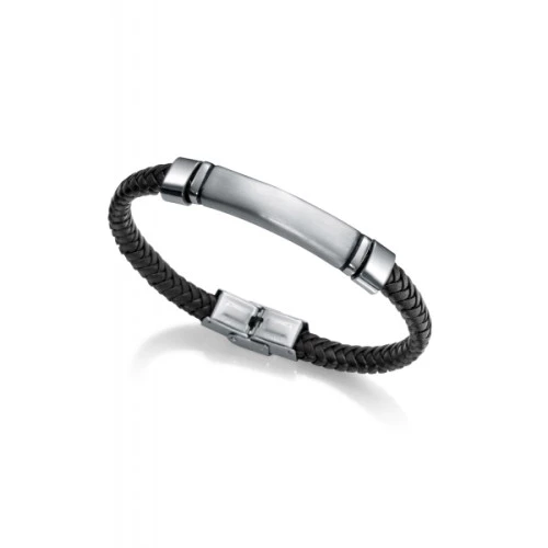 Pulsera de Viceroy para hombre 75219p01010 en cuero negro trenzado con chapa central en acero satinado, garantía y estuche Viceroy