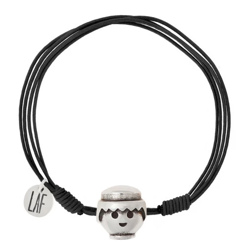 Pulseras de Playmobil con cabeza de click plateado pulsera joya de poliester en negro CP00052 vientos