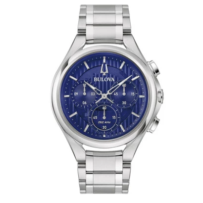 Reloj Bulova 96A302 crono para hombre curv progressive, acero, esfera azul, cristal zafiro curvo resistente, garantía Bulova.