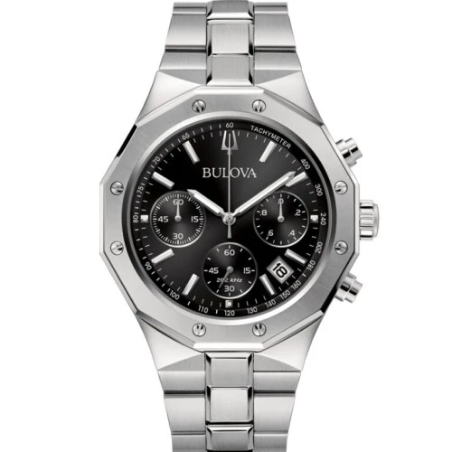 Reloj Bulova 96B410 crono para hombre Classic Octogon crono progressive, acero, esfera negra, calendario, garantía Bulova.