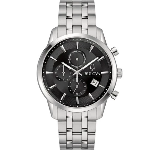 Reloj Bulova 96B412 crono para hombre Sutton Chrono crono en acero, esfera negra, calendario, garantía Bulova.