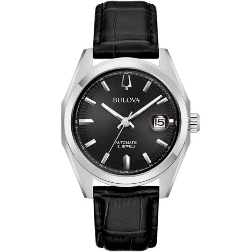 Reloj Bulova 96B435 para hombre automático acero y piel, Surveyor Mecha Classic, esfera negra, garantía Bulova.