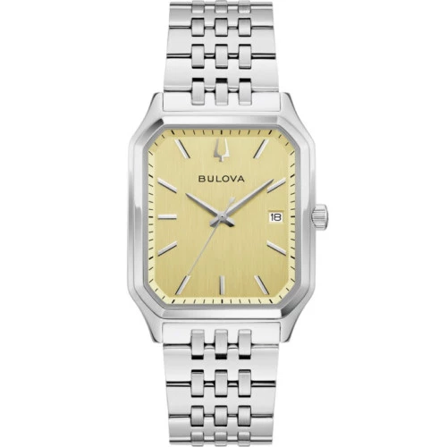 Reloj Bulova 96B471 para hombre colección Classic Tony Bennett. Caja de acero con 32 x43 milímetros con corona de cambio de hora en la posición de las tres, brazalete en acero sólido 316L con cierre oculto desplegable. Esfera en marrón con agujas e índices en plateado finos y elegantes. calendario en la posición de las tres. Grueso de 7, mm y peso de 114 gramos. Cristal zafiro. Movimiento cuarzo 9U13, made in Japan. Resistente al agua 30 metros. Estuche y garantía oficial Bulova.