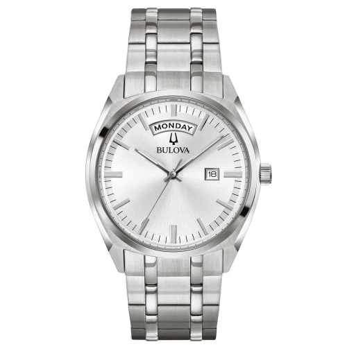 Reloj Bulova 96c127 para hombre, 39 mm acero, esfera blanca, agujas plateadas, doble calendario, garantía Bulova.