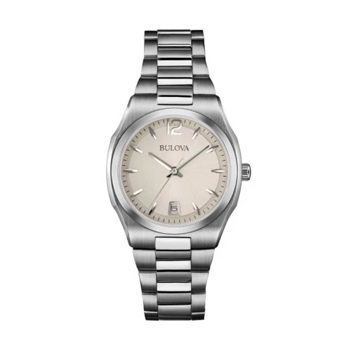 Reloj Bulova 96m126 para mujer de cuarzo, 34 mm acero, esfera beige agujas plateadas, calendario, garantía Bulova.