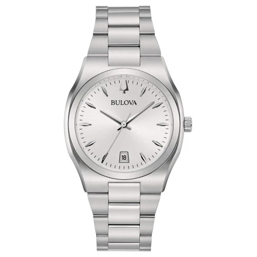 Reloj Bulova 96m156 para mujer de cuarzo, 34 mm acero, esfera blanca agujas plateadas, calendario, garantía Bulova.
