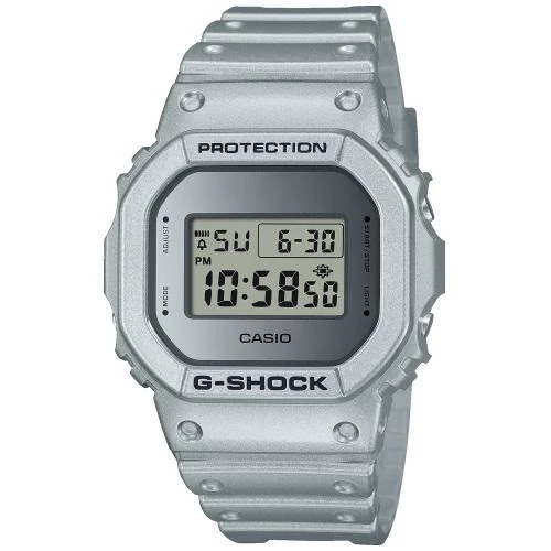 Reloj Casio DW-5600FF-8ER g-shock. Caja y correa de resina y con cierre de hebilla de seguridad. Digital esfera en gris. Cristal mineral difícil de rayar. Reloj con luz ilumina toda la pantalla. Pantalla destellante cuando llega a una alarma. Cronómetro 1/100 segundos, mide tiempos parciales y tiempo final; capacidad de cronometrar hasta una hora. Temporizador con cuenta atrás con señal acústica en el momento programado. Se pueden configurar por segundos o hasta con 1 hora de antelación, para recordar entrenamientos a intervalos o para toma de medicamentos. Alarma múltiple diarias independientes. La señal horaria ocasiona que el reloj emita zumbidos a cada hora. Calendario automático muestra siempre la fecha correcta. Hora pm/am 12 24 horas. Vida útil de la pila de 2 años aproximadamente. Medidas de 48,9 mm x 42,8 mm x 13,4 mm y peso de 53 gramos. Resistente al agua 200 metros, 20 bares (ISO 22810). Estuche y garantía Casio.