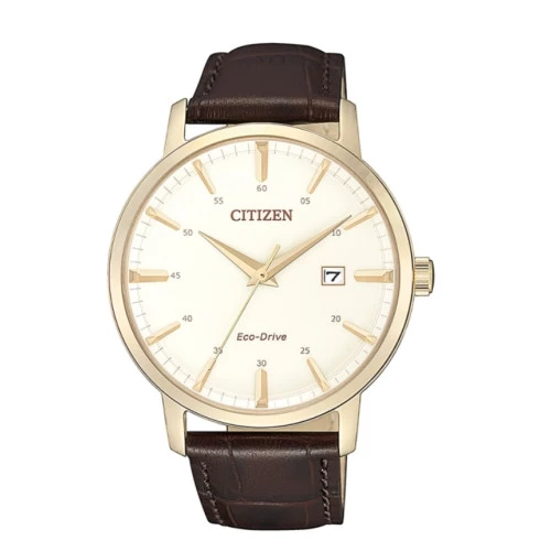 Reloj Citizen bm7463-12a eco drive para hombre, en acero dorado y piel, esfera en blanco agujas e índices en dorado, calendario en las tres, calibre e111, estuche y garantía Citizen
