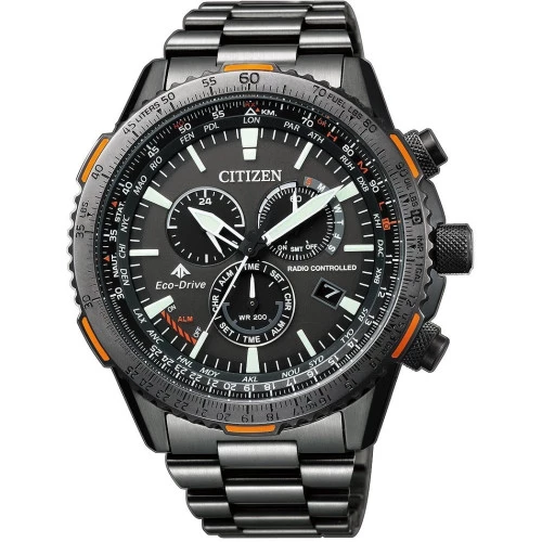 Reloj Citizen cb5007-51h radiocontrolado para hombre caja y brazalete de acero negro, cristal zafiro, crono, alarma y EcoDrive (se carga con luz), garantía Citizen.