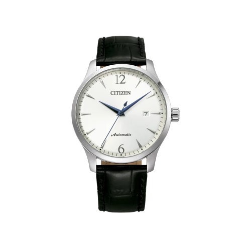 Reloj Citizen nj0110-18a automático para hombre en acero y piel, esfera en blanco con agujas en azul, calibre 8210, garantía Citizen