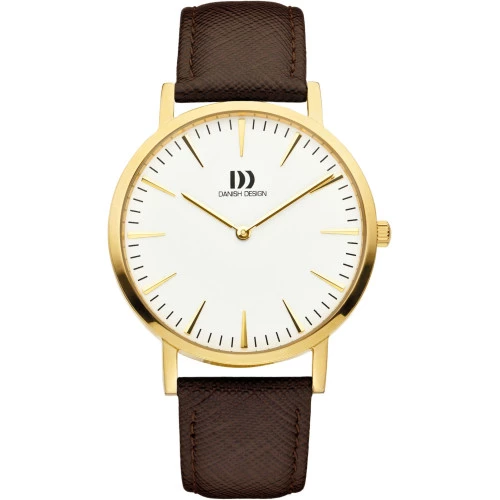 Reloj Danish DesignIQ15Q1235 unisex Tidlos, DANISH DESIGN LONDON. Reloj con caja de acero dorado y correa de piel en marrón con pespuntes con ancho de 20 milímetros, con cierre de hebilla seguridad. Cristal mineral resistente. Esfera en color blanco con agujas e índices en dorado finos y elegantes. Diámetro de caja de 40 milímetros y grueso 6 milímetros. Resistente al agua 3 bares 30 metros. Maquinaria calibre Seiko VX50. Estuche y garantía Danish Design