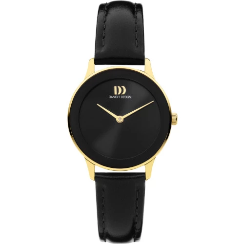 Reloj Danish DesignIV11Q1288 colección para mujer PURE - NOSTALGI 1988 BLACK GOLD. Reloj con caja de acero dorado con correa de piel negra con pespuntes y hebilla de de seguridad. Cristal mineral resistente. Esfera en color negro con agujas en dorado finas y elegantes. Diámetro de caja de 29 milímetros y grueso 6,2 milímetros. Resistente al agua 3 bares 30 metros. Maquinaria calibre MIYOTA GL22. Estuche y garantía Danish Design