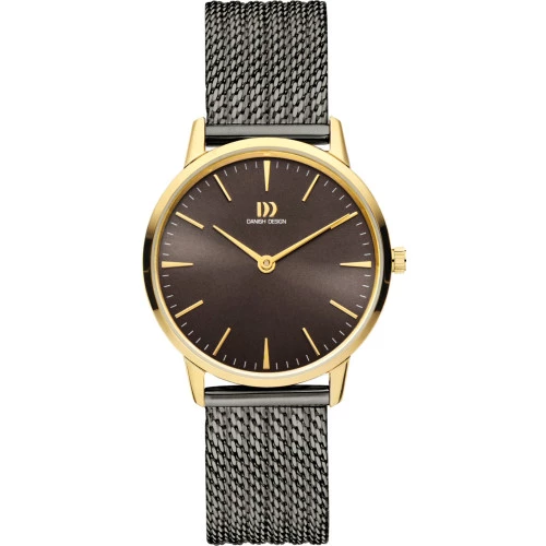 Reloj Danish DesignIV70Q1251 colección para mujer Tidlos, DANISH DESIGN AKILIA. Reloj con caja de acero dorado y correa malla milanesa gris con cierre deslizante de seguridad. Cristal mineral resistente. Esfera en color negro con agujas e índices en dorado finos y elegantes. Diámetro de caja de 32 milímetros y grueso 6,2 milímetros. Resistente al agua 3 bares 30 metros. Maquinaria calibre MIYOTA GL20. Estuche y garantía Danish Design