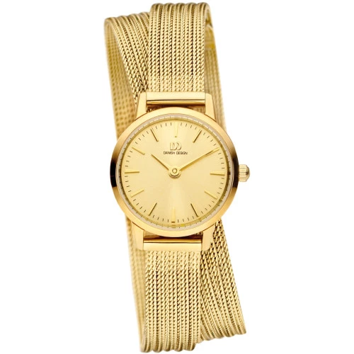 Reloj Danish DesignIV86Q1268 colección para mujer Tidlos, DANISH DESIGN AKILIA MINI SWING. Reloj con caja de acero y correa malla milanesa dorada con dos vueltas tipo pulsera con cierre deslizante de seguridad. Cristal mineral resistente. Esfera en color dorado con agujas e índices en dorado finos y elegantes. Diámetro de caja de 22 milímetros y grueso 6,2 milímetros. Resistente al agua 3 bares 30 metros. Maquinaria calibre Miyota 5Y20. Estuche y garantía Danish Design