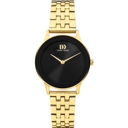 Reloj Danish DesignIV99Q1288 colección para mujer PURE - NOSTALGI 1988 BLACK LINK. Reloj con caja de acero y brazalete dorado con cierre broche de seguridad. Cristal mineral resistente. Esfera en color negro con agujas en dorado finos y elegantes. Diámetro de caja de 29 milímetros y grueso 6,2 milímetros. Resistente al agua 3 bares 30 metros. Maquinaria calibre MIYOTA GL22. Estuche y garantía Danish Design