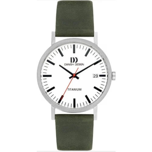 Reloj Danish Design Q1273IQ28 colección para caballero GLOBE -DANISH DESIGN RHINE. Reloj con caja de titanio y correa de piel en verde con cierre de hebilla de seguridad. Cristal mineral resistente. Esfera en color blanco con índices y agujas en negro y segundero en rojo. Calendario en la posición de las tres. Diámetro de caja de 39 milímetros y grueso de 6,9 milímetros. Resistente al agua 3 bares 30 metros. Maquinaria calibre Seiko VJ52. Estuche y garantía Danish Design