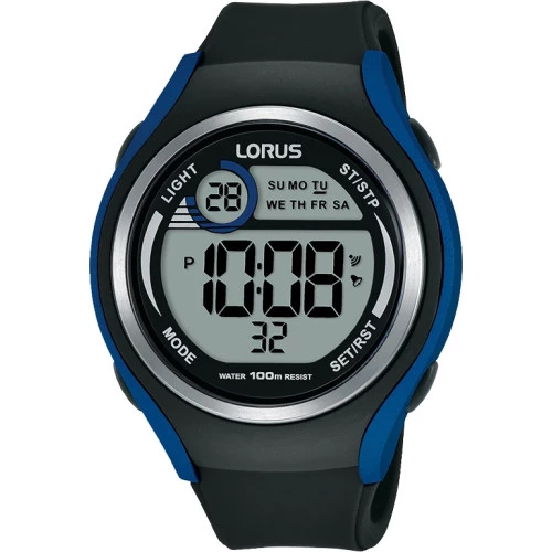 Reloj Lorus r2377lx9 para hombre digital en negro y azul, alarma, luz, crono, calendario, movimiento japones z009, 100 metros, estuche y garantía Lorus