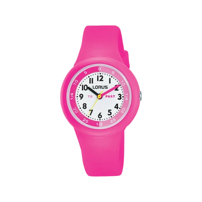 Reloj Lorus caja de plástico de calidad en rosa correa de silicona rosa,