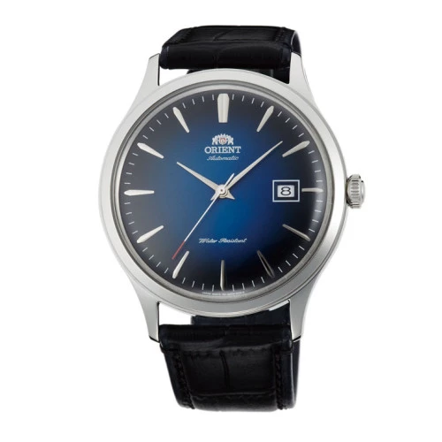 Reloj Orient automático de cuerda ac08004d bambino correa de piel y caja de acero esfera azul cristal bombé calibre f6724, garantía Orient