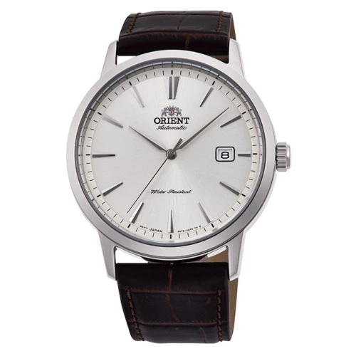 Reloj Orient automático elegante ra-ac0f07s30b para hombre caja en acero con esfera en blanco y correa piel marrón, calibre f6722, garantía Orient