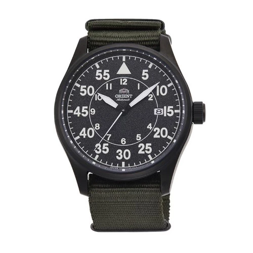 Reloj Orient automático ra-ac0h02n10b para hombre caja en acero negro con esfera en negro números arábigos y correa lona verde, calibre f6722, garantía Orient