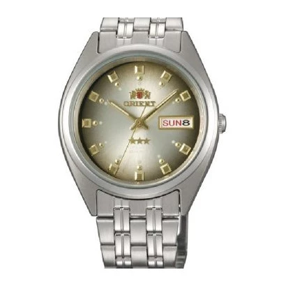 Reloj Orient automático FAB00009P9 hombre vintage. Movimiento mecánico: Orient calibre f4902, Made in Japan. Correa y caja de acero, con esfera vintage, índices y agujas en dorado luminiscentes. Doble calendario a las tres. Tres estrellas 21 rubíes. Diámetro de caja de 37 milímetros y grueso de 11,8 milímetros. Resistente al agua 50 metros. Cristal mineral. Estuche Orient y garantía oficial Orient.