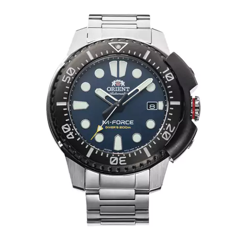 Reloj Orient M-force RA-AC0L07L00B para hombre en acero, esfera azul, corona roscada, bisel giratorio unidireccional, cristal zafiro, calibre f672, reserva de marcha 40 horas, garantía Orient