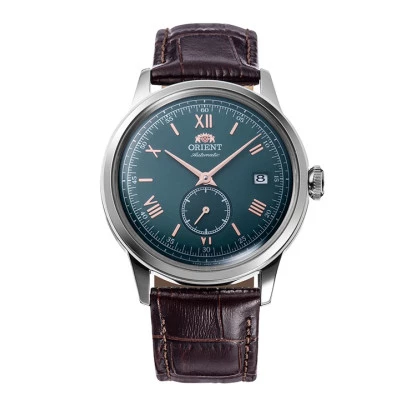 Reloj Orient automático RA-AP0102E30B bambino small second para hombre en acero y piel con esfera en verde con día del mes calibre f6222, Orient bambino garantía Orient España