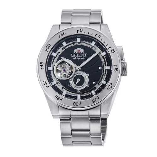 Reloj Orient automático ra-ar0201b para hombre retro future camara en acero, esfera en negro y agujas e índices luminiscentes, calibre f6s22, garantía Orient
