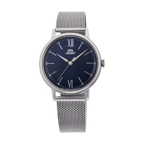 Reloj Orient ra-qc1701l10b para mujer en acero esfera azul malla milanesa, tres agujas, estuche y garantía Orient.