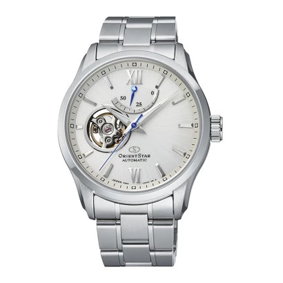 Reloj Orient star automático re-at0003s00b para hombre redondo en acero, esfera blanca índices en azul, reserva de marcha, f6r42, garantía Orient