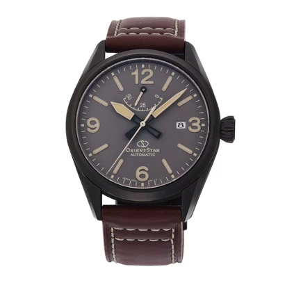 Reloj Orient Star automático re-au0202n00b, esfera gris, caja en acero negro, correa piel y cristal zafiro, reserva de marcha 50 horas con calibre f6n43, para hombre con garantía Orient