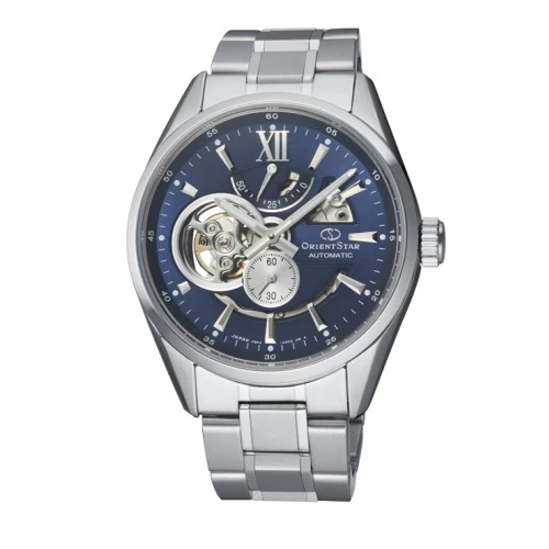 Reloj Orient Star automático re-av0003l00b en acero caja y brazalete cristal zafiro, esfera azul, reserva de marcha 50 horas con calibre f6f44, para hombre con garantía Orient.