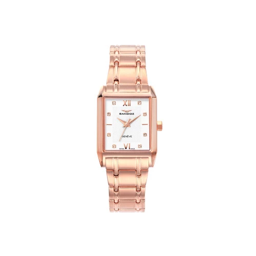 Reloj Sandoz 81326-93 elegante para mujer en acero rosa caja y brazalete con cierre de seguridad, esfera en blanco, rectangular, zafiro, garantía Sandoz