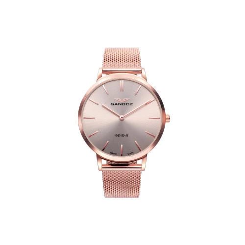 Reloj Sandoz en acero ip rosado con brazalete de malla tipo milanesa reloj plano