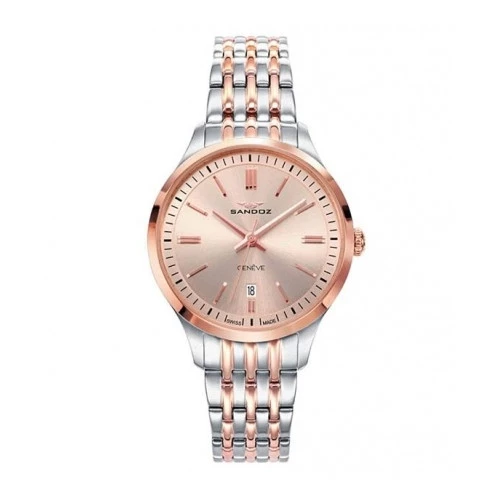 Reloj Sandoz 81352-97 para mujer en acero bicolor rosa, esfera en salmón con índices finos y elegantes calendario, swiss made, estuche y garantía Sandoz