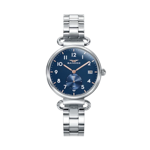 Reloj Sandoz 81362-34 para mujer en acero con esfera azul, números arábigos e índices en rose elegantes, calendario, swiss made. Estuche y garantía Sandoz