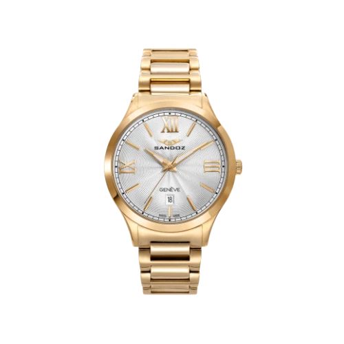 Reloj Sandoz en acero caja y brazalete ip dorado.
