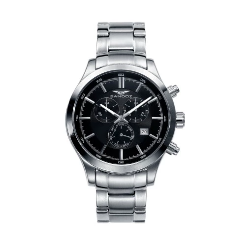 Reloj Sandoz para hombre 81383-57 cronógrafo suizo acero cristal zafiro y esfera negra indices en plateado garantía Sandoz