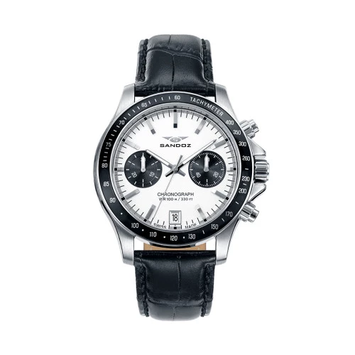 Reloj Sandoz 81405-07 cronógrafo para hombre caja en acero y correa de piel, esfera en blanco, cristal zafiro, reloj elegante, garantía Sandoz, swiss made