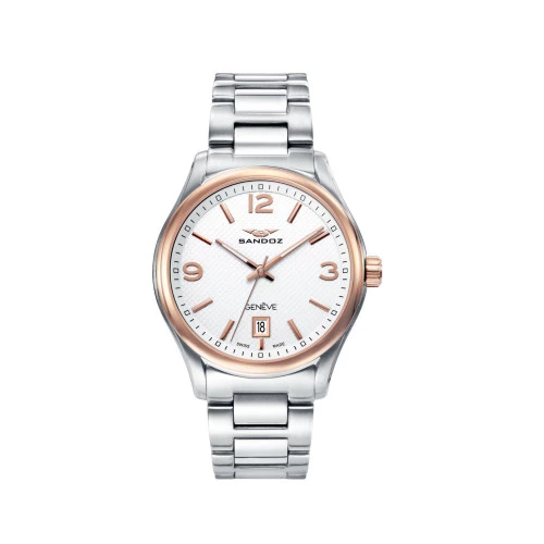 Reloj Sandoz 81425-95 para hombre elegante en acero bicolor rosado esfera blanca, agujas e índices en rose zafiro, swiss made, estuche y garantía Sandoz