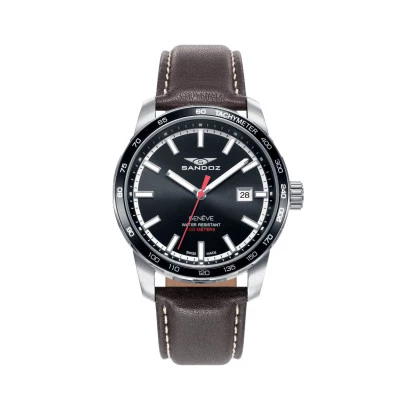 Reloj Sandoz para hombre 81455-57 tres agujas suizo en acero y piel, esfera en negro, calendario, 100 metros, swiss made, estuche y garantía Sandoz