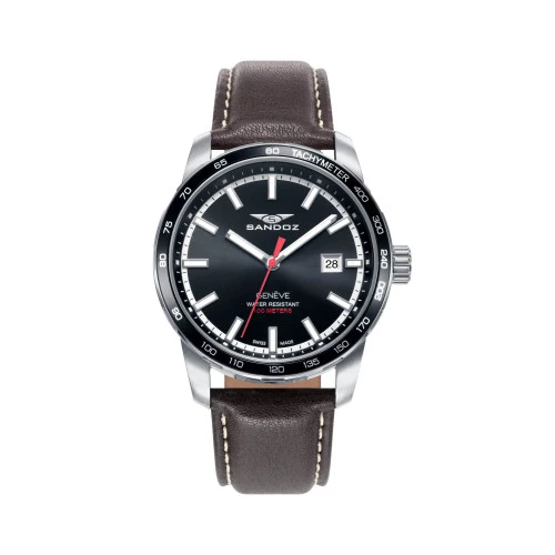 Reloj Sandoz para hombre 81455-57 tres agujas suizo en acero y piel, esfera en negro, calendario, 100 metros, swiss made, estuche y garantía Sandoz