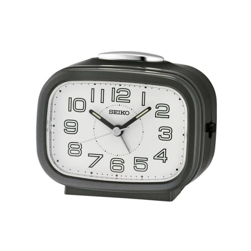Reloj Seiko despertador QHK060K cuadrado 9,9 cm silencioso, caja de plástico en negro, números arábigos, alarma zumbador, garantía Seiko