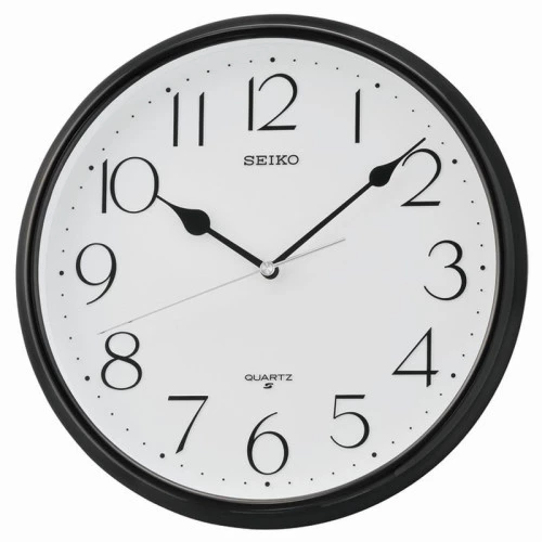 Reloj Seiko de pared qxa651k en blanco con franja en negro, números arábigos segundero de barrido. Garantía Seiko