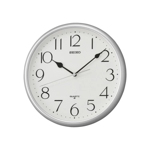 Reloj Seiko pared qxa747s. Caja de plástico de calidad en plateado con esfera en blanco con números arábigos. Medidas de 28 cm diámetro, 3,9 cm de grueso. Garantía oficial Seiko