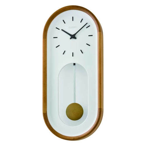 Reloj Seiko pared elegante QXC247B con péndulo borde en madera y esfera en blanco, índices finos y elegantes en negrosilencioso. Medidas 50,2 cm de alto; 22,2 ancho 8,6 cm de fondo. Garantía oficial Seiko