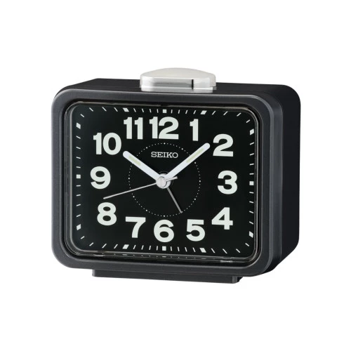 Reloj Seiko QHK062K despertador resina de calidad cuadrado esfera negra, barrido, silencioso alarma timbre, garantía Seiko