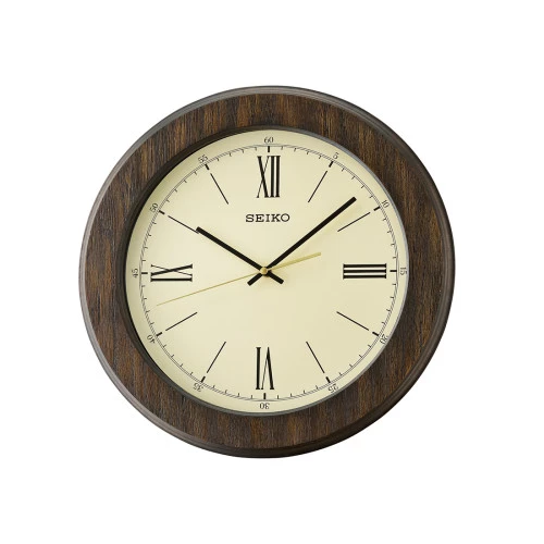 Reloj Seiko de pared en redondo qxa682b en madera números en romano, garantía Seiko